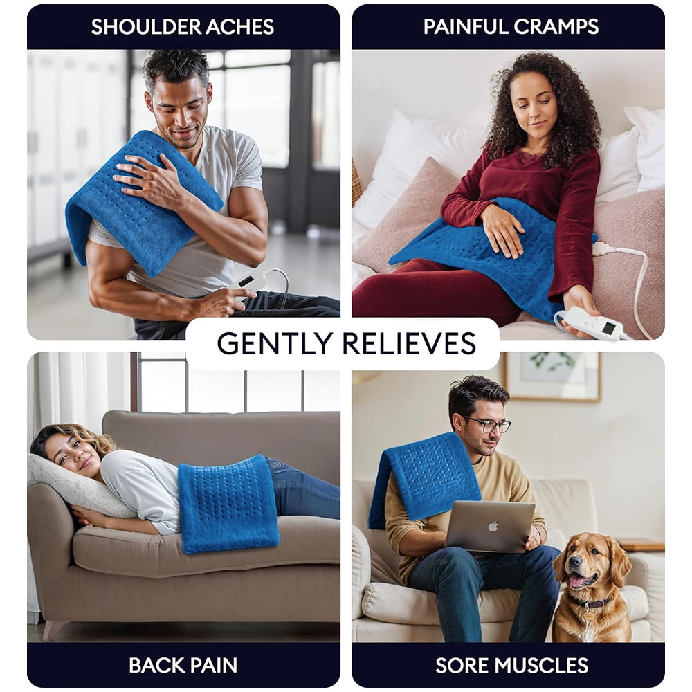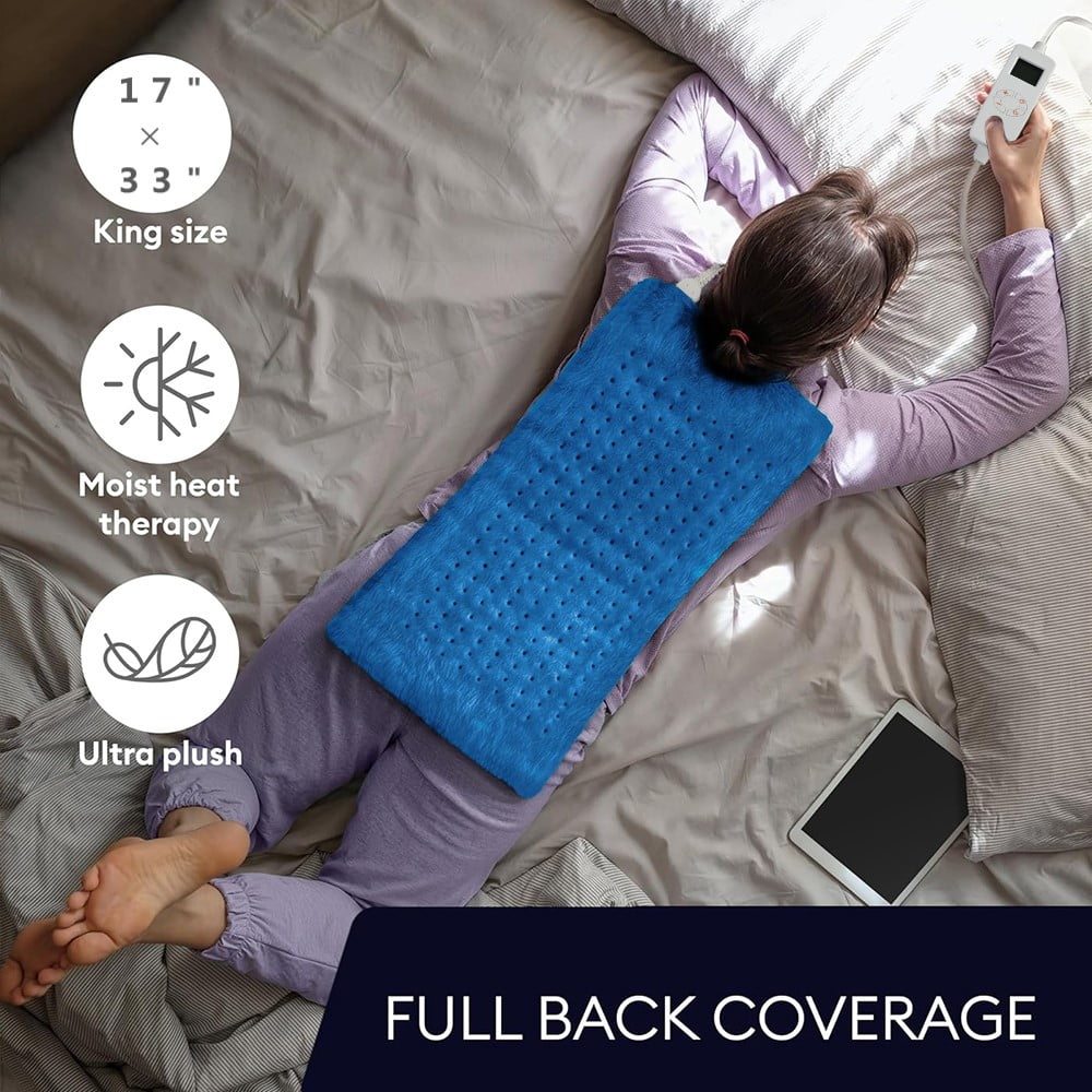 33"x17" Heating Pad Portable Heating Pad for Shoulder Neck, 3 Timer & 6 Temperature Controller, Blue