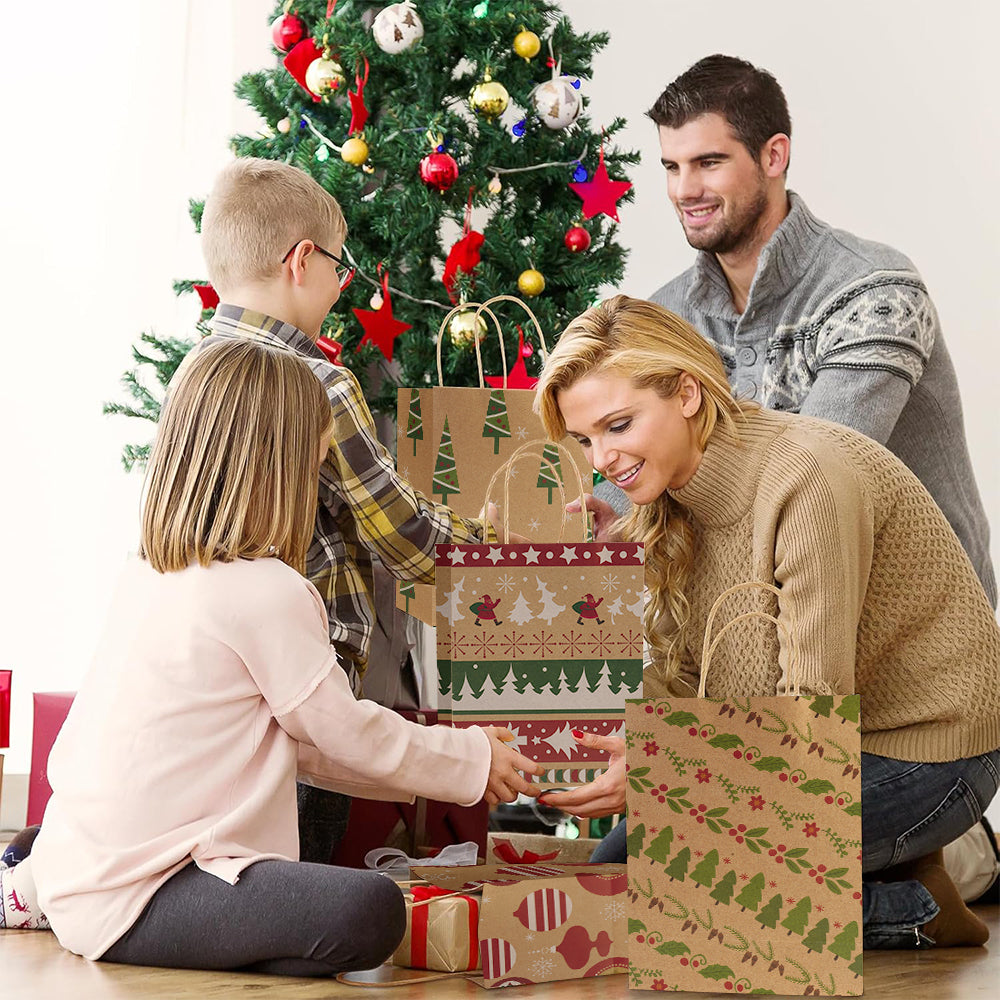 - Premium Quality: Made from sturdy and durable kraft paper, these Christmas present wrap bags are designed to hold gifts securely, our Christmas bags are reusable—making them a sustainable choice for the holiday season.